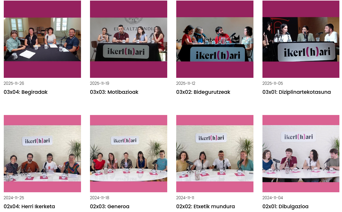 Euskal ikertzaile gazteei ahotsa emateko sortu dugun espazioa da ikerl(h)ari bideopodcasta. Ikergazteen kezkak mahaigainean jartzen ditugu ordubeteko saioetan.