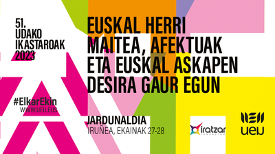 UEUren 51. Udako Ikastaroetan "Euskal Herri maitea, afektuak eta euskal askapen desira gaur egun" jardunaldia martxan da Iruñean. Iratzar Fundazioak eta UEUk elkarlanean antolatutako jardunaldia da eta haren gainean hitz egiteko egon gara Andoni Olariaga Azkaraterekin (Berriz, 1984). Olariaga, Filosofian doktorea eta Iratzar Fundazioko langilea da.